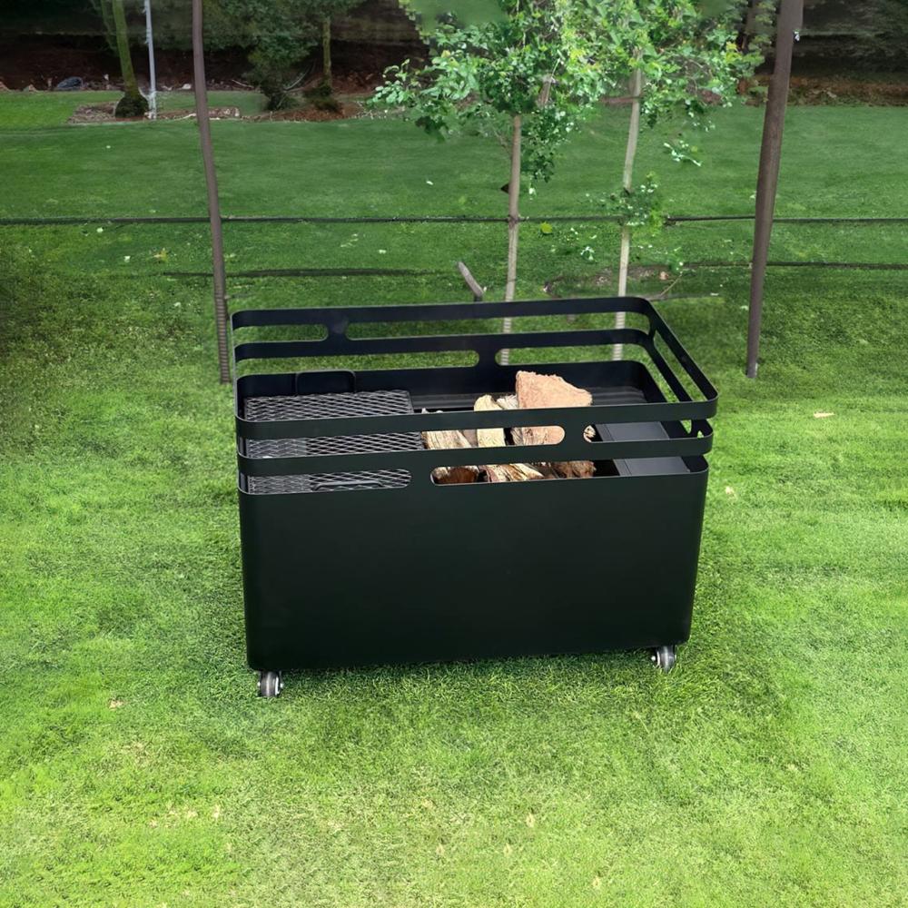 - منقل شوي متحرك هذه الشواية السوداء المستطيلة الأنيقة مثالية لشوي الأطعمة المفضلة لديك في الهواء الطلق. تجعل إطاراتها المتحركة من السهل تحريكها،