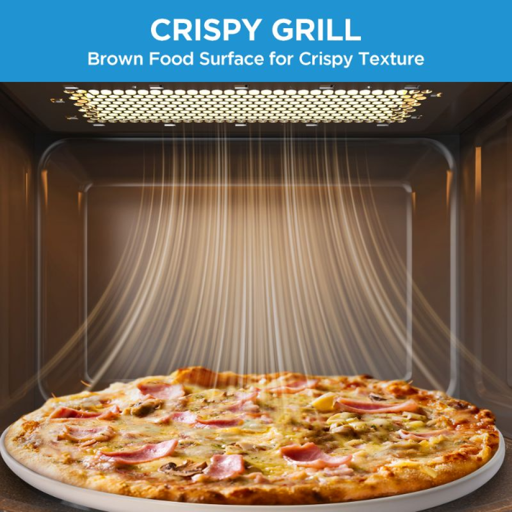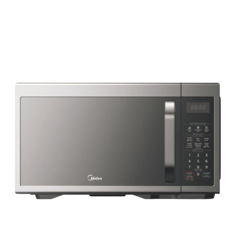ميكرويف مايديا الكهربائي مع شواية - وظيفة تشغيل / ايقاف الصوت لتشغيل الصامت - قفل امان العربيه - رف المشواة (لا يمكن استخدامه في وظيفة المتفوق وإعداد على آش الزجاجي