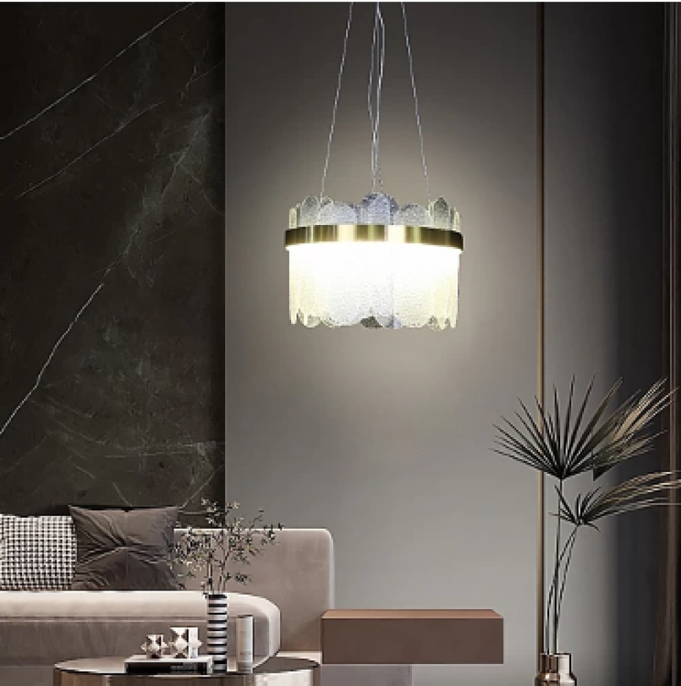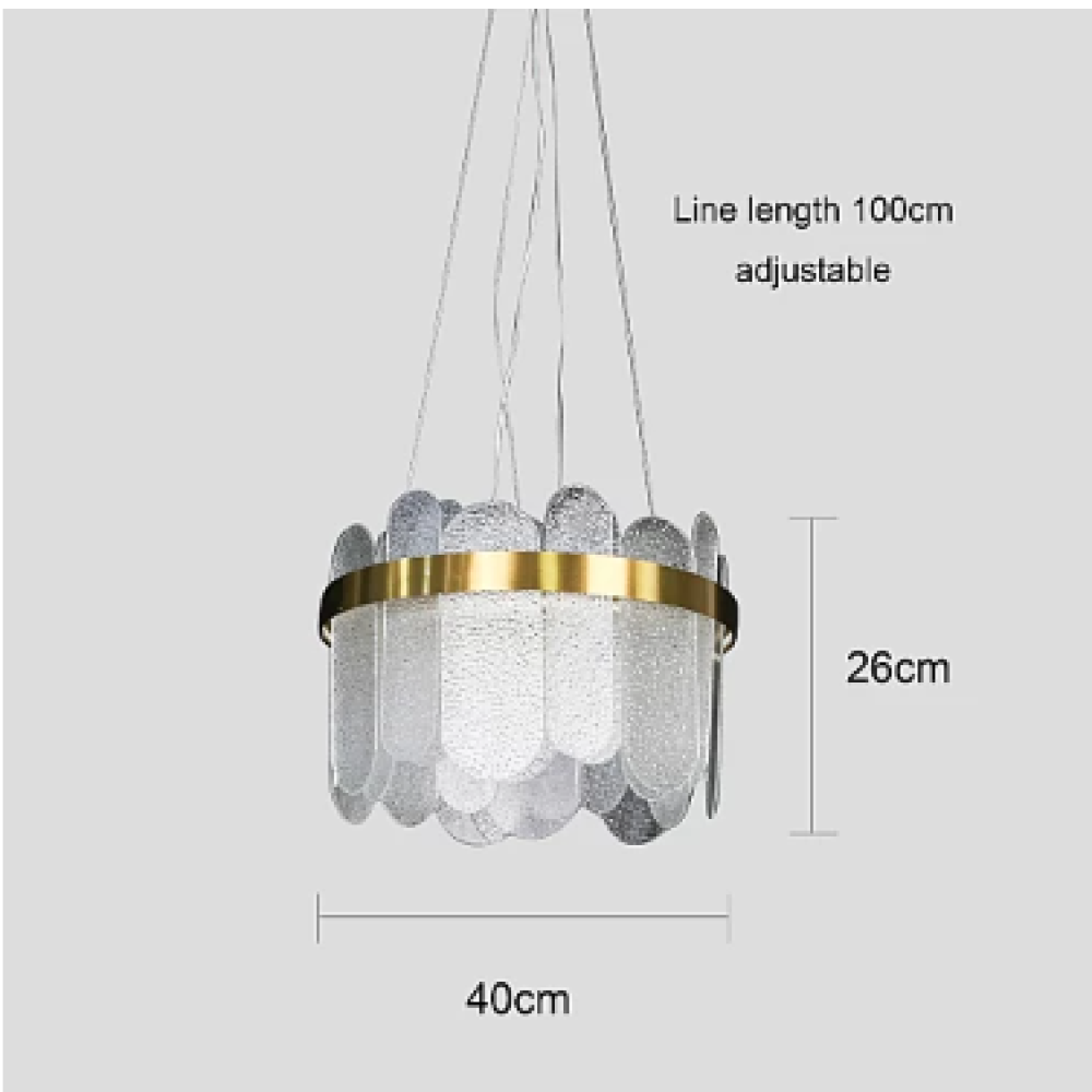 نجف مودرن لون شكل ذهبي مع اشراقة متعددة الألوان ( كريمي + اصفر + ابيض ) تصميم يجمع بين الأناقه والحداثه قطر 40 سم .