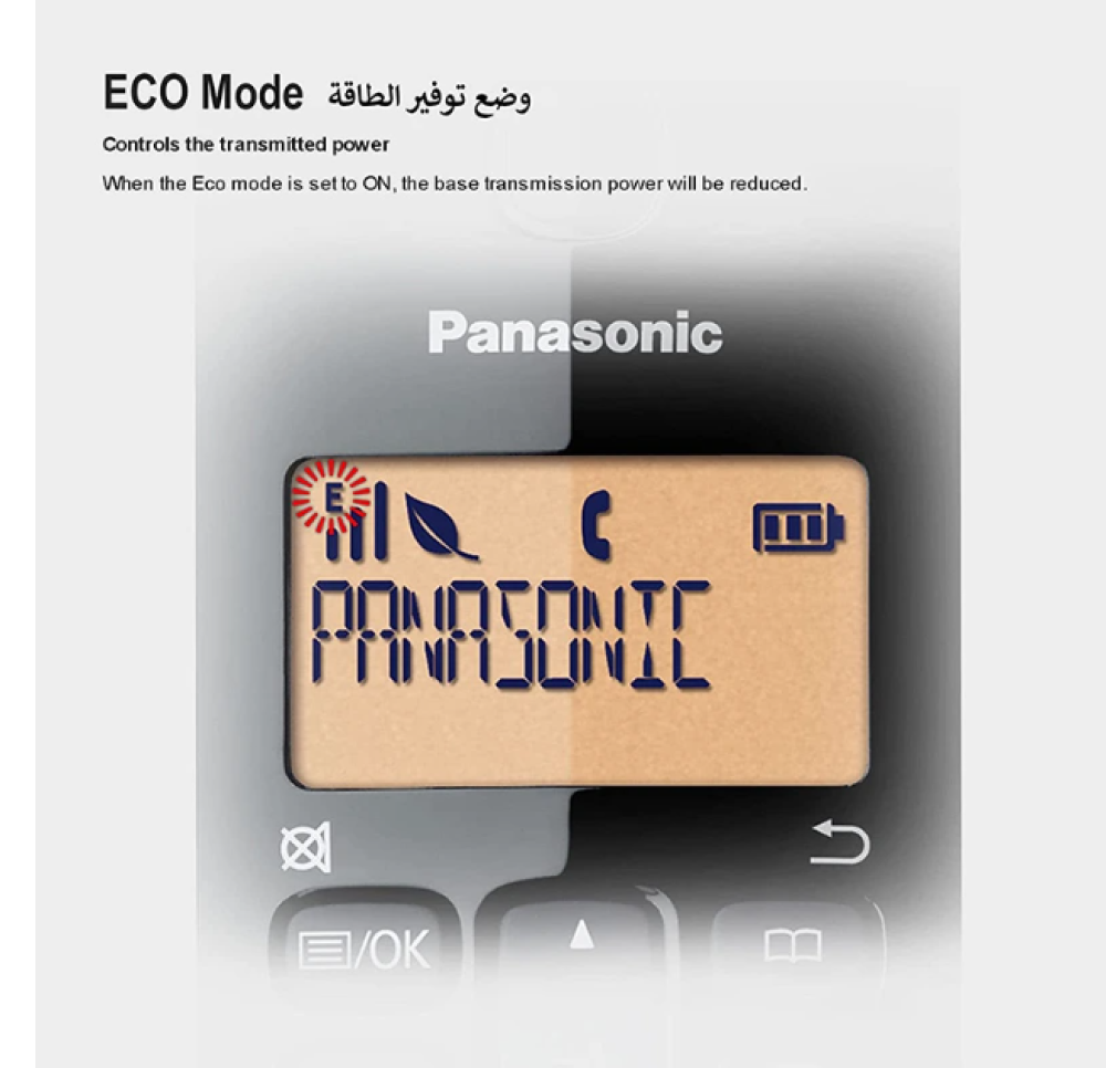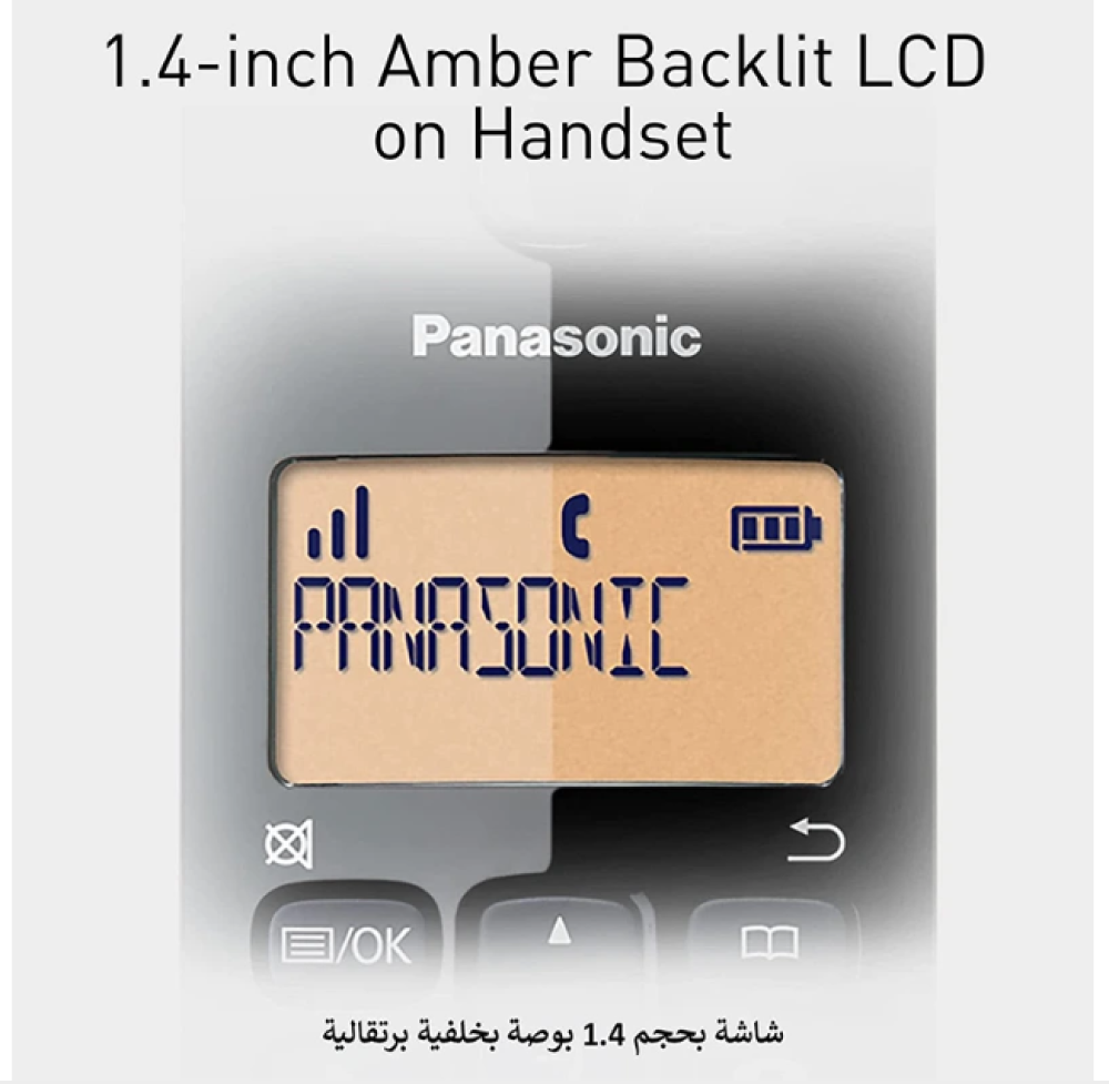 هاتف لاسلكي باناسونيك مع اضاءة خلفية مع كاشف المتصل - أسود