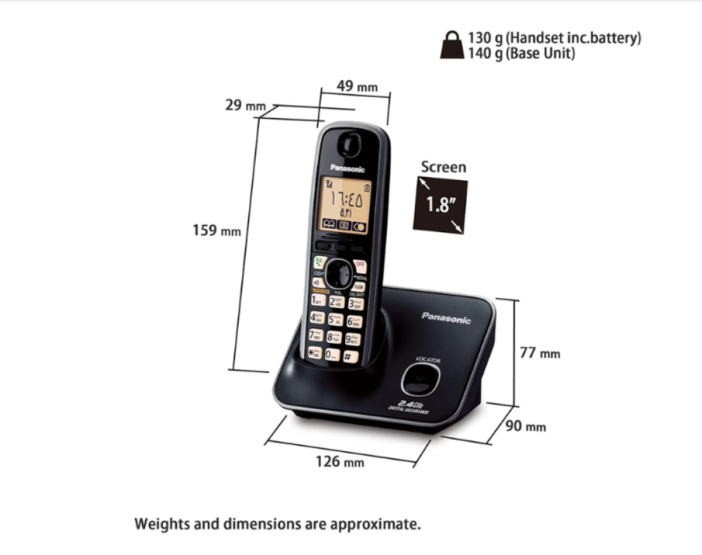 هاتف لاسلكي باناسونيك 2.4GHz يدعم اللغة العربية KX-TG3711BX - أسود