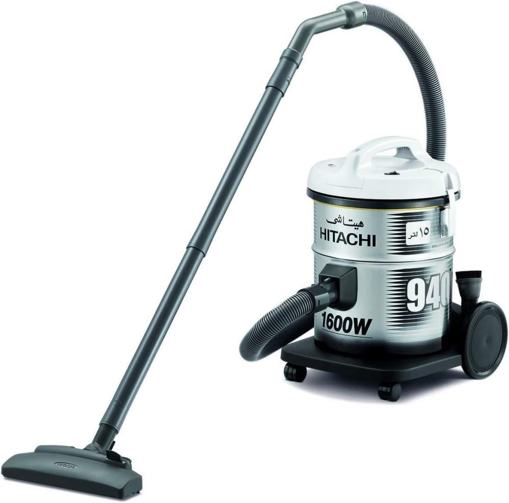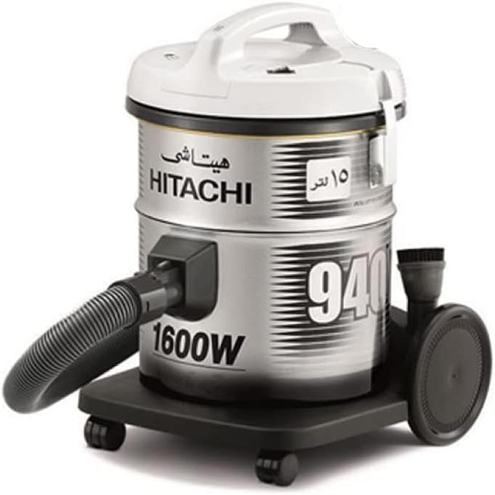 هيتاشي CV-940YPG مكنسة برميلية بقوة موتور 1400 وات و قوة شفط 320 وات , 50/60 هرتزخزان سعة 15 لتر وسلك توصيل كهربائي بطول 7.8 مترمزودة ب 4 فلاتر2 قطع بلاستيكية للتحكم في طول امبوب الشفط مع فرشاة تنظيف الشقوقو فرشاة للاتربة