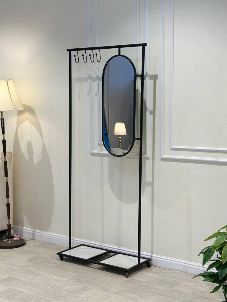 علاقة ملابس مع مرآة – بتصميم راقٍ وقاعدة رخام مقسمة