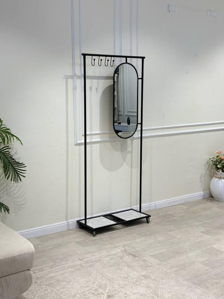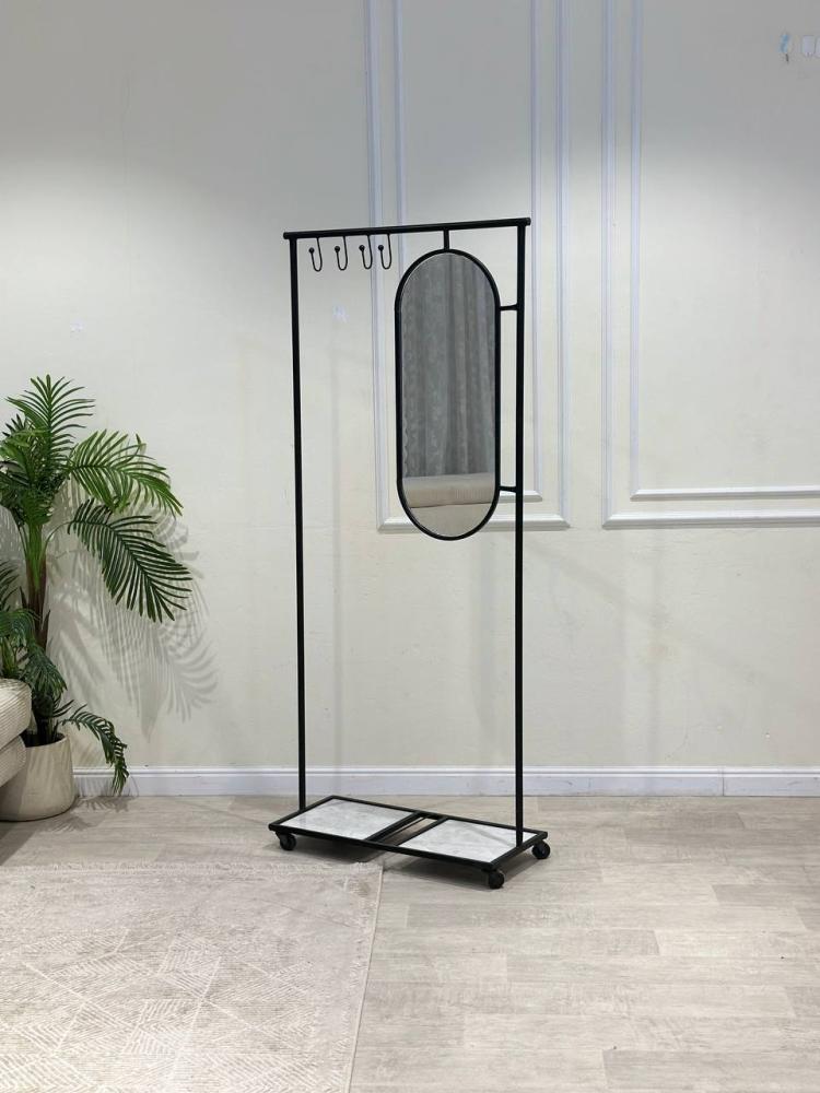 علاقة ملابس مع مرآة – بتصميم راقٍ وقاعدة رخام مقسمة