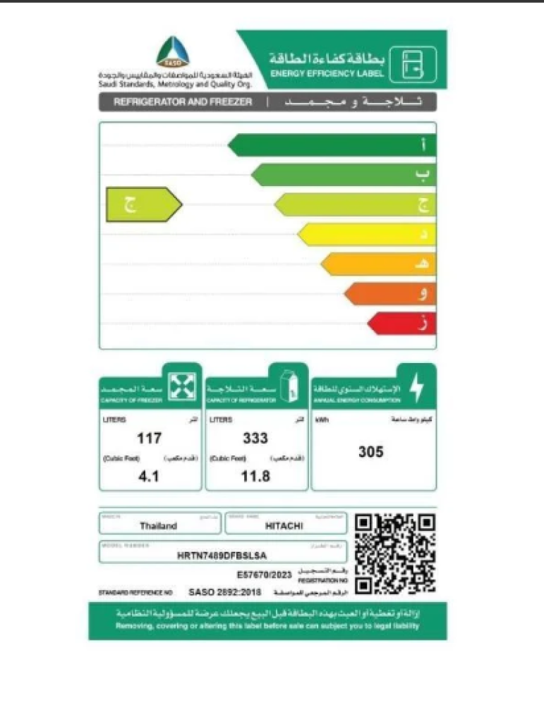 ثلاجة هيتاشي 450 لتر -15.90قدم كمبرسر عاكس عدد 2مروحة استيل HRTN7489DFBSLSA