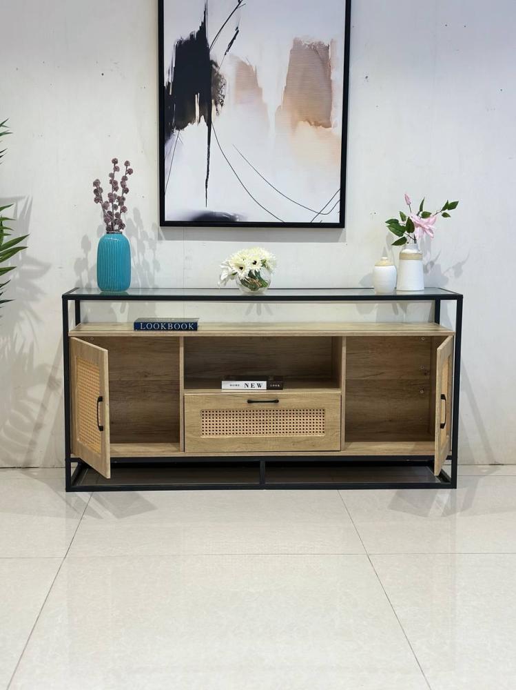 المواد : يتكون من خشب بيج اللون ذو نسيج مميز مع سطح علوي من الزجاج الشفاف الذي يضيف لمسة عصرية.