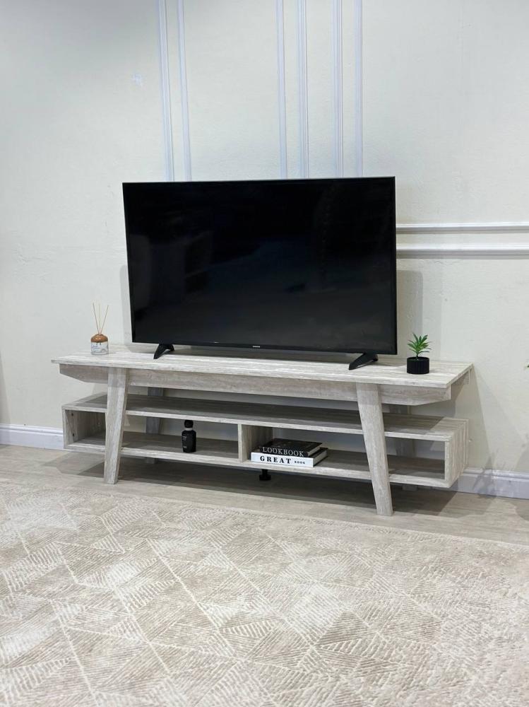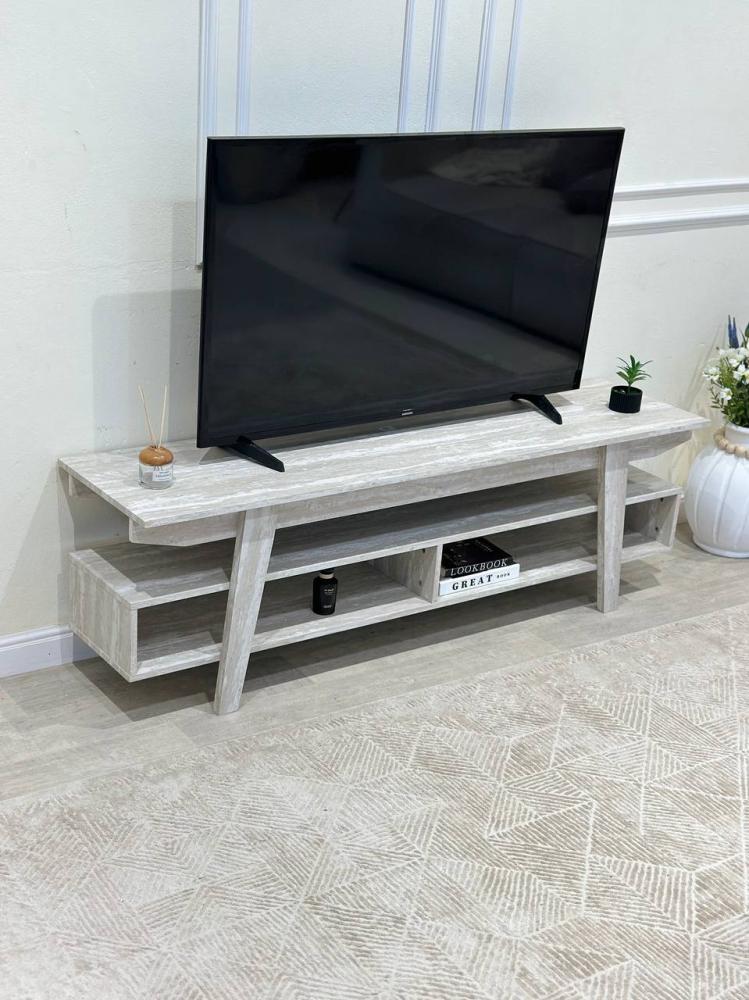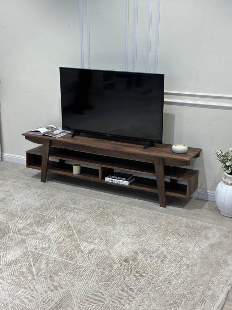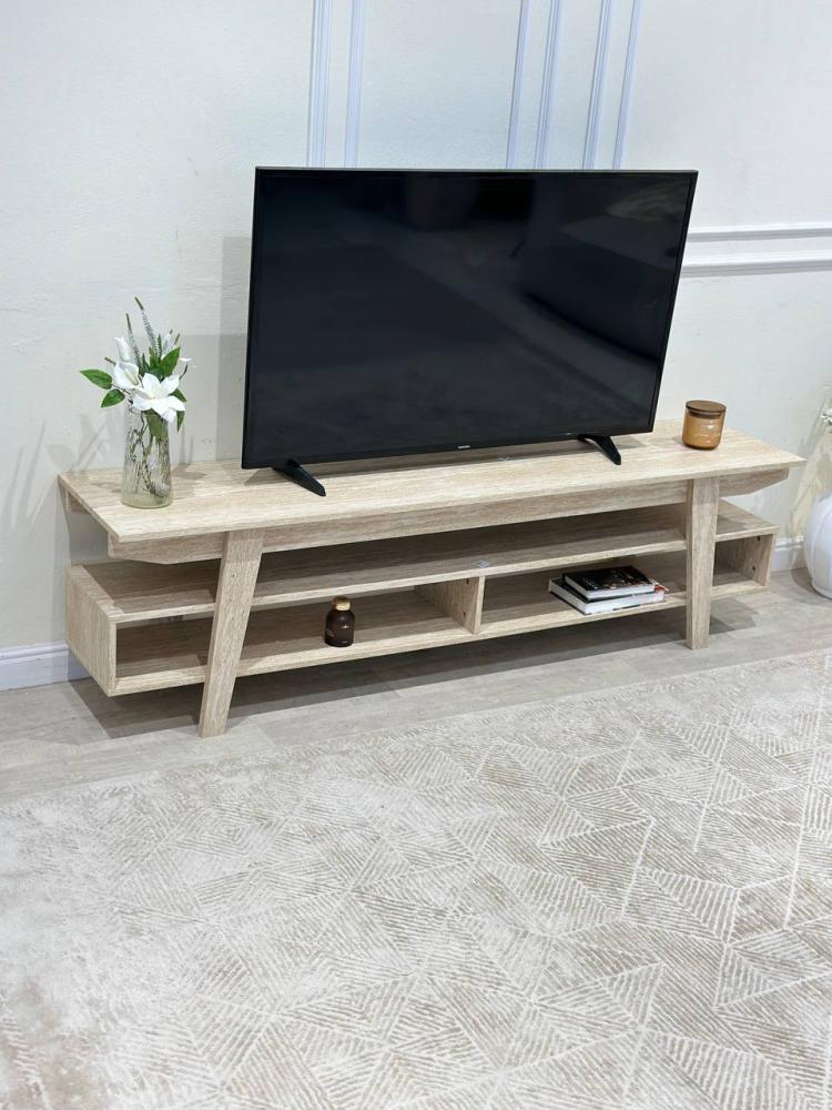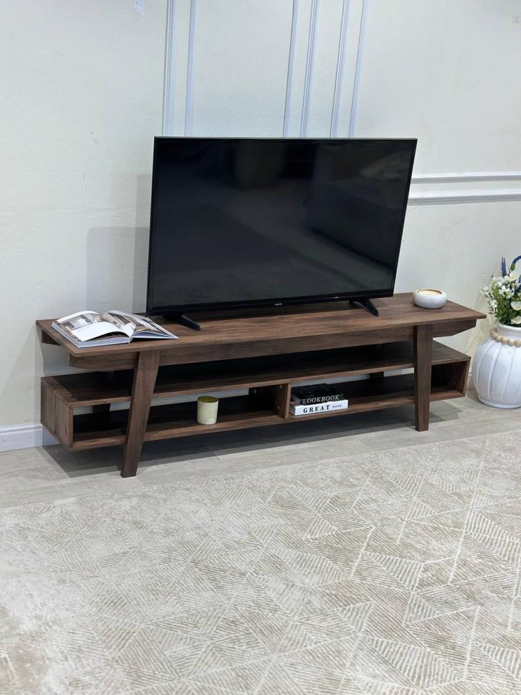 ما يميز هذه الطاولة هو تعدد مساحاتها التخزينية والأرفف الجانبية والسفلية التي تمنحك المرونة الكاملة في ترتيب جميع أجهزتك الإلكترونية مثل أجهزة الاستقبال وأجهزة الألعاب، إضافة إلى إمكانية عرض الكتب، الاكسسوارات، أو حتى النباتات الصغيرة والقطع الفنية. كل ذلك يجعلها قطعة متعددة الاستخدامات تسهّل حياتك اليومية وتزيد من جمالية المكان.