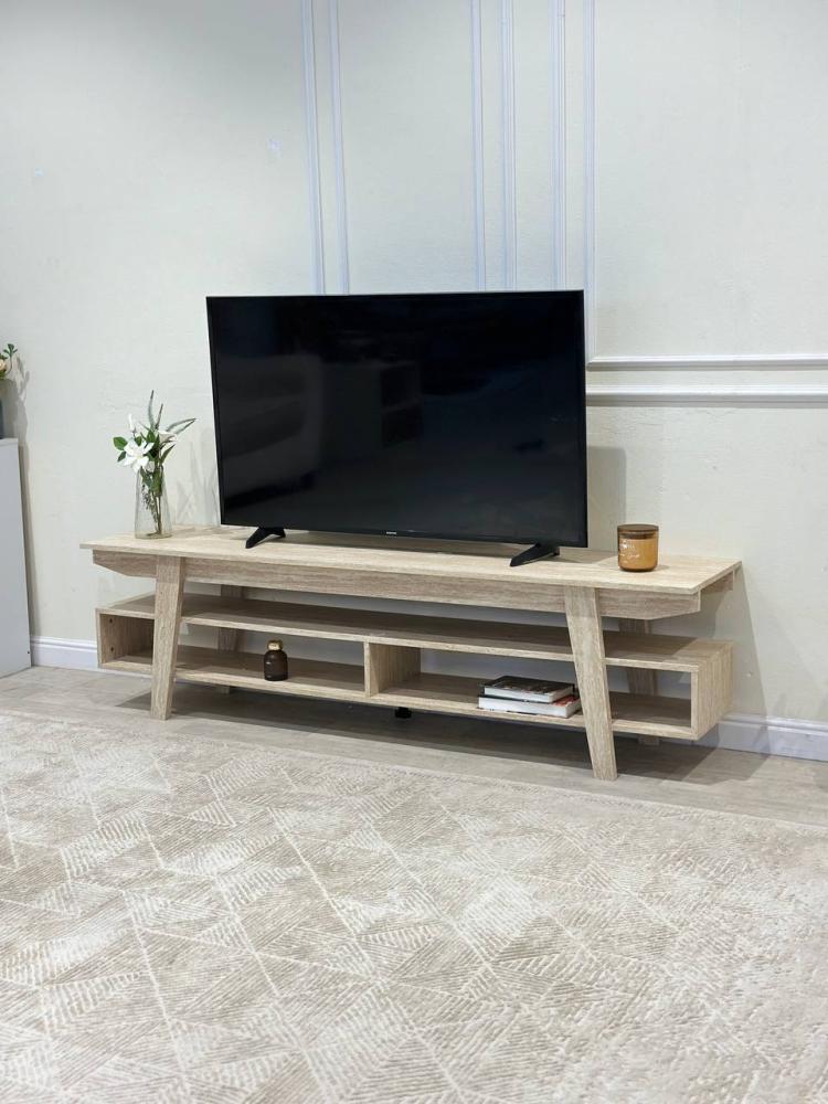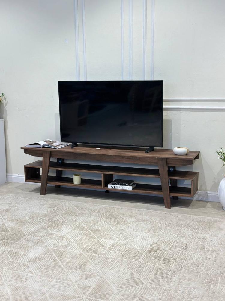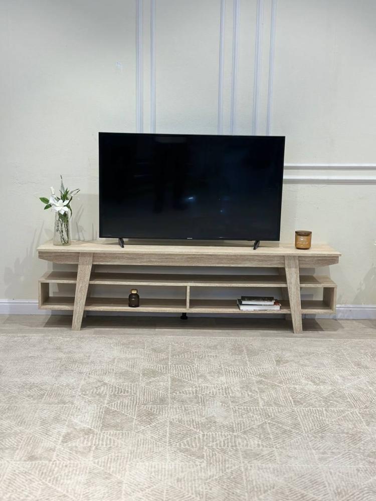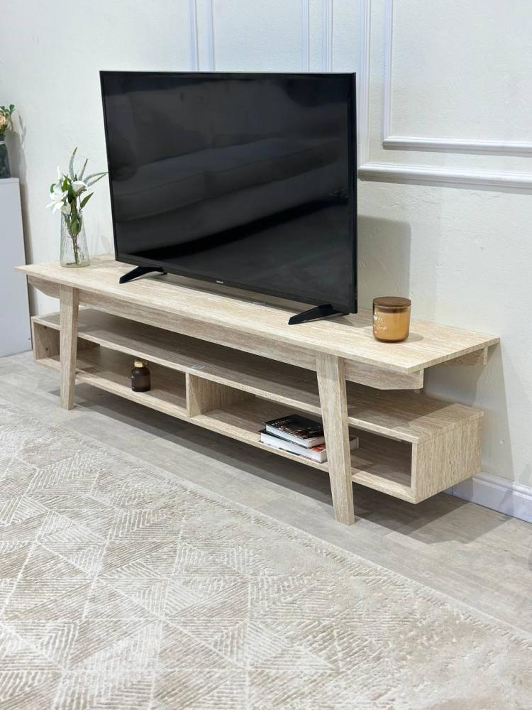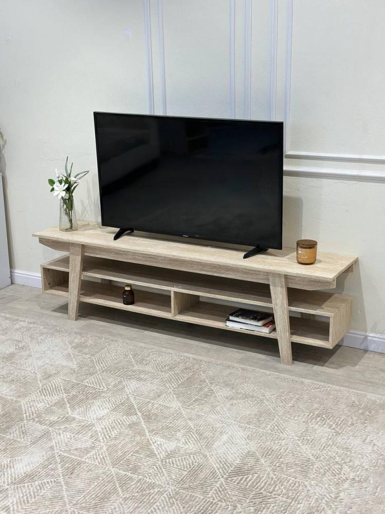 ما يميز هذه الطاولة هو تعدد مساحاتها التخزينية والأرفف الجانبية والسفلية التي تمنحك المرونة الكاملة في ترتيب جميع أجهزتك الإلكترونية مثل أجهزة الاستقبال وأجهزة الألعاب، إضافة إلى إمكانية عرض الكتب، الاكسسوارات، أو حتى النباتات الصغيرة والقطع الفنية. كل ذلك يجعلها قطعة متعددة الاستخدامات تسهّل حياتك اليومية وتزيد من جمالية المكان.