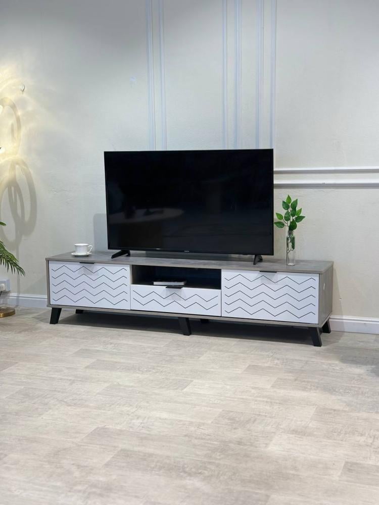 أضف لمسة من الأناقة والعملية إلى منزلك مع هذه الطاولة المتميزة لتلفزيونك. تتميز الطاولة بتصميم عصري ومريح يندمج بسهولة مع مختلف أنماط الديكور الداخلي.