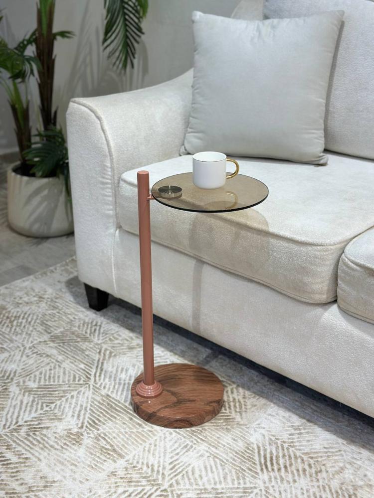 طاولة جانبية صغيرة بتصميم عملي ولون بني طبيعي يضفي دفئًا وأناقة على المجالس وغرف الجلوس. مثالية لتقديم الضيافة أو استخدامها كقطعة جانبية أنيقة بجانب الكنب أو في الزوايا.