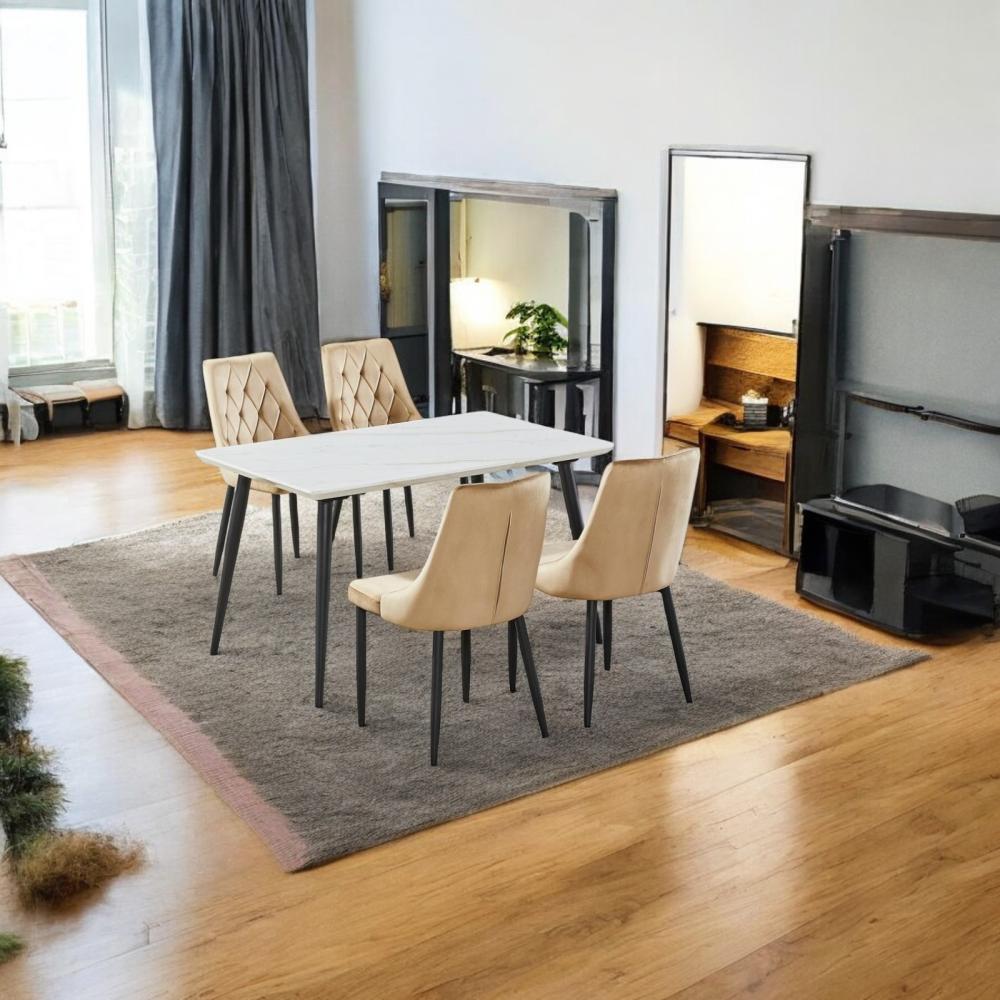 طاولة طعام بسطح بديل الرخام مع 4 كراسي أنيقة