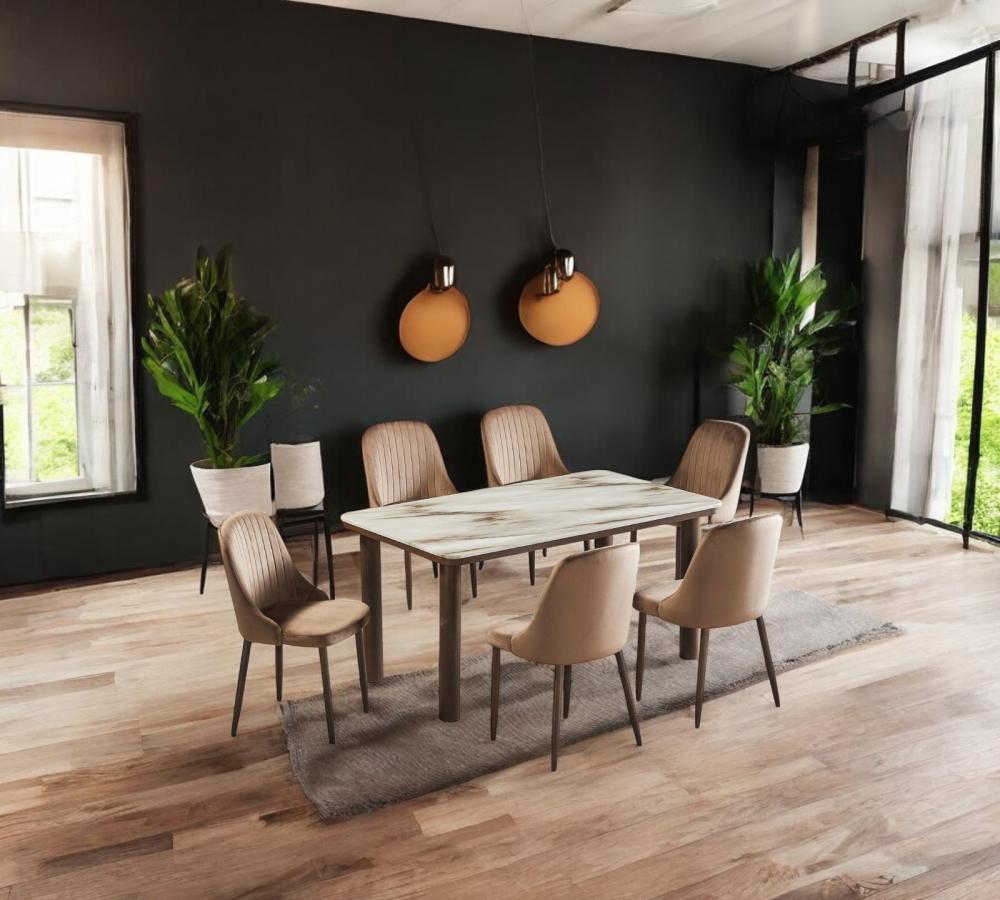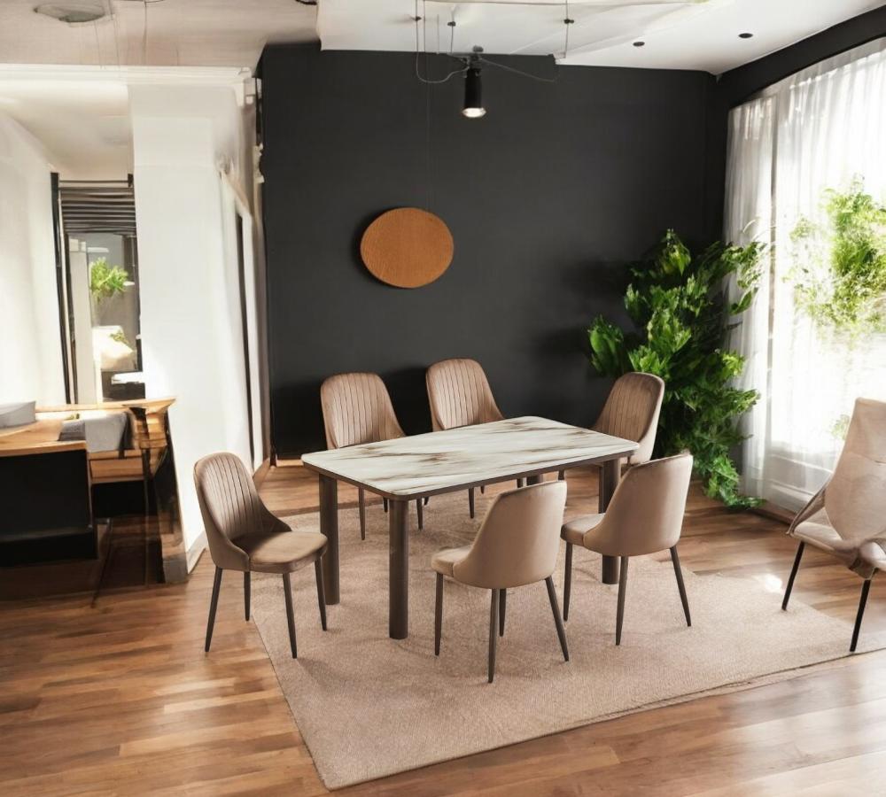 - عدد الكراسي: 6 كراسي مريحة بتصميم أنيق ومبطن لتوفير أقصى درجات الراحة.
