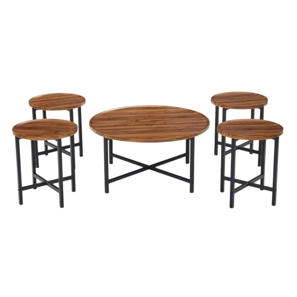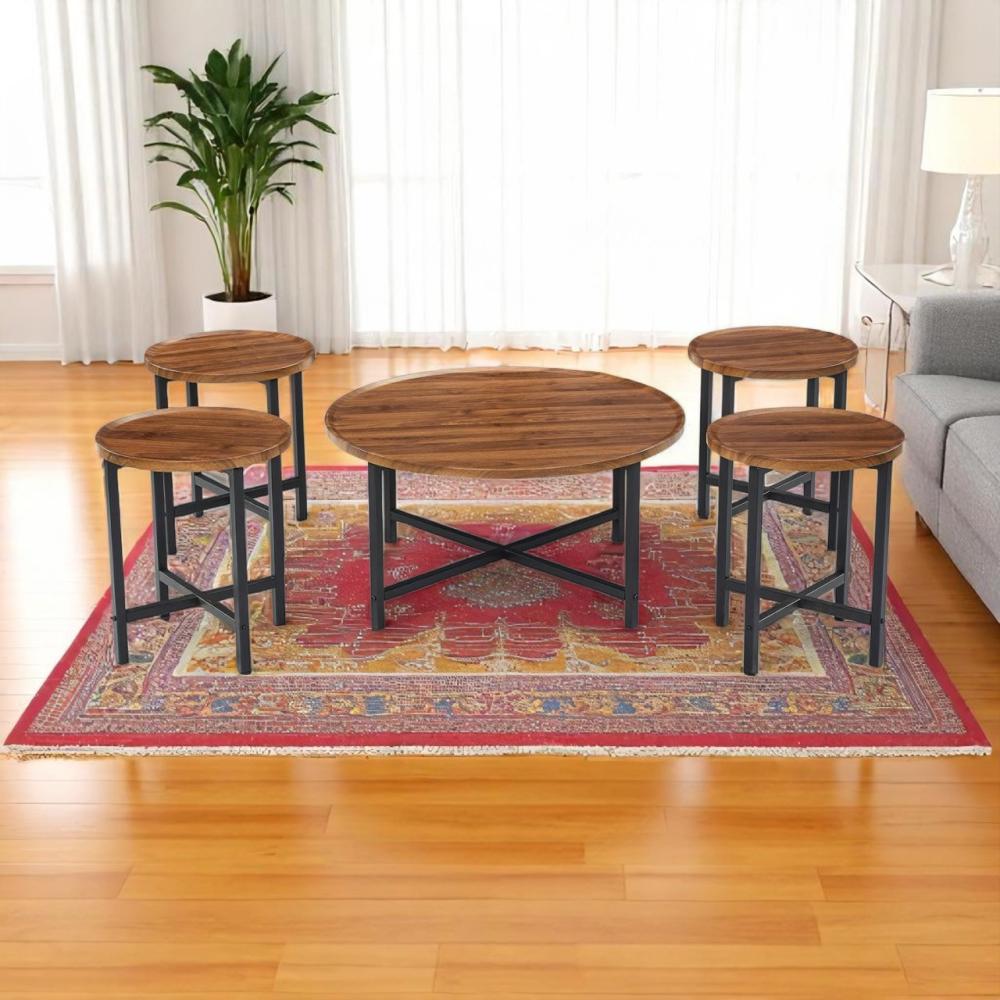 هذا المنتج عبارة عن طقم طاولة قهوة خشبية مكون من خمس قطع، يتضمن طاولة قهوة بيضاوية وأربعة طاولة جانبيه لطقم مصنوع من الخشب الصلب مع إطارات معدنية سوداء. يتميز التصميم بالبساطة والأناقة، مما يجعله مناسبًا لمختلف الديكورات الداخلية. يمكن استخدام هذا الطقم في غرف المعيشة، أو غرف الاستقبال، أو حتى في المساحات الخارجية المغطاة