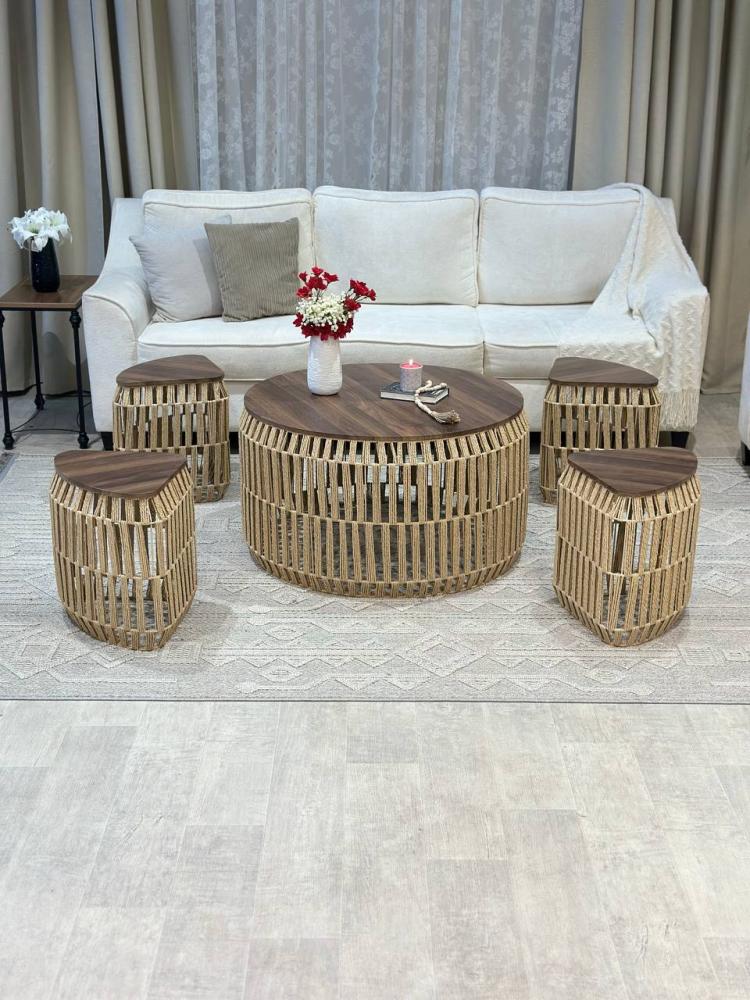- 2. طقم طاولة وسط مع 4 طاولات خدمة