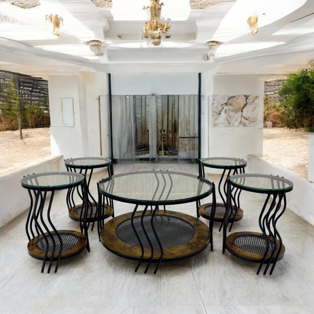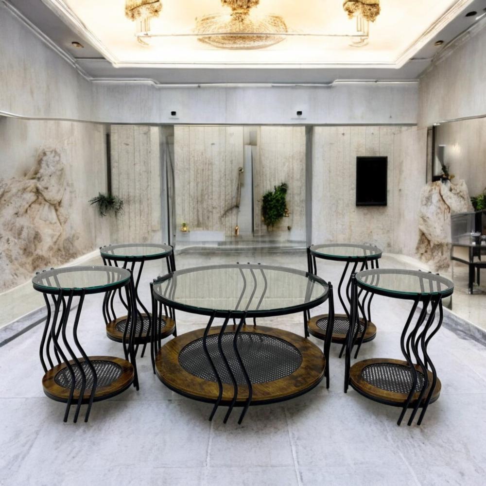 طقم طاولات ضيافة خشب راتان سطح زجاج شفاف 4 خدمة هو مجموعة من الطاولات التي تم تصميمها لتلبية احتياجات الاستخدام اليومي في المنازل والمكاتب، مع توفير لمسة جمالية أنيقة. وفيما يلي وصف ومميزات هذا النوع من الأطقم: