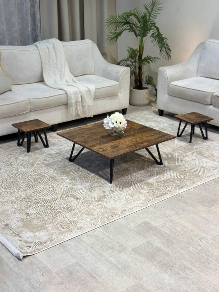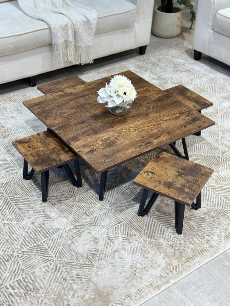 طقم طاولة أرضي 4+1 – خشب بني بتصميم عملي وأنيق