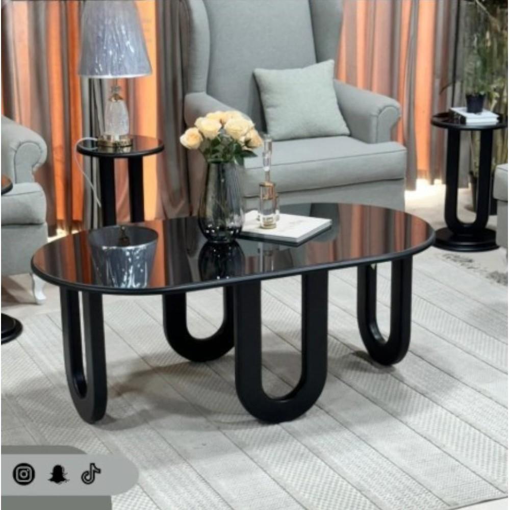- يتميز الطقم بسطح أسود أنيق، يعزز من جمال الطاولات ويضفي لمسة من الفخامة على المكان.
