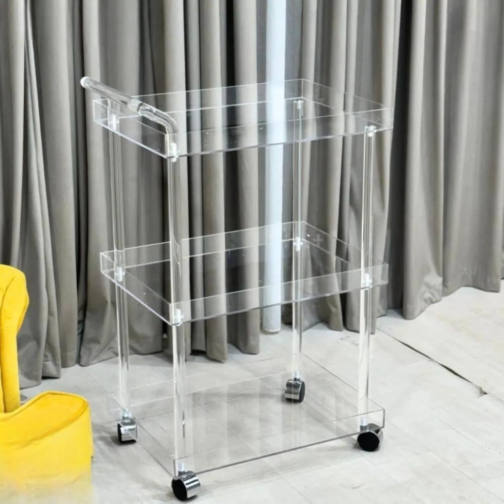 عربة تقديم الأكريلك الشفاف خيار مثالي لمن يبحث عن مزيج من العملية والأناقة، وتُعد قطعة فريدة تضيف لمسة من الفخامة لأي مكان