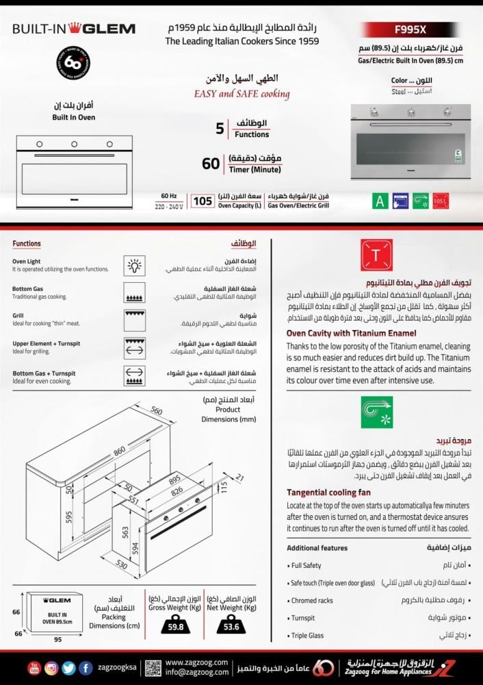 - الارتفاع : 59.4 سم , العرض : 82.6 سم , الوزن : 53.6 كغ