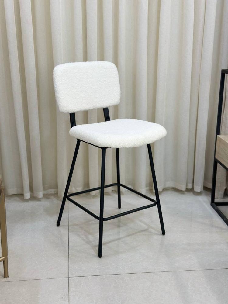 كرسي بار مرتفع بقماش أبيض يجمع بين الأناقة العصرية والراحة العملية
