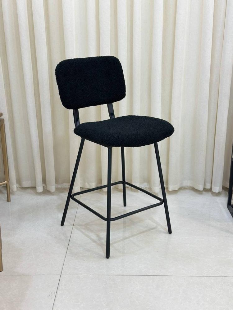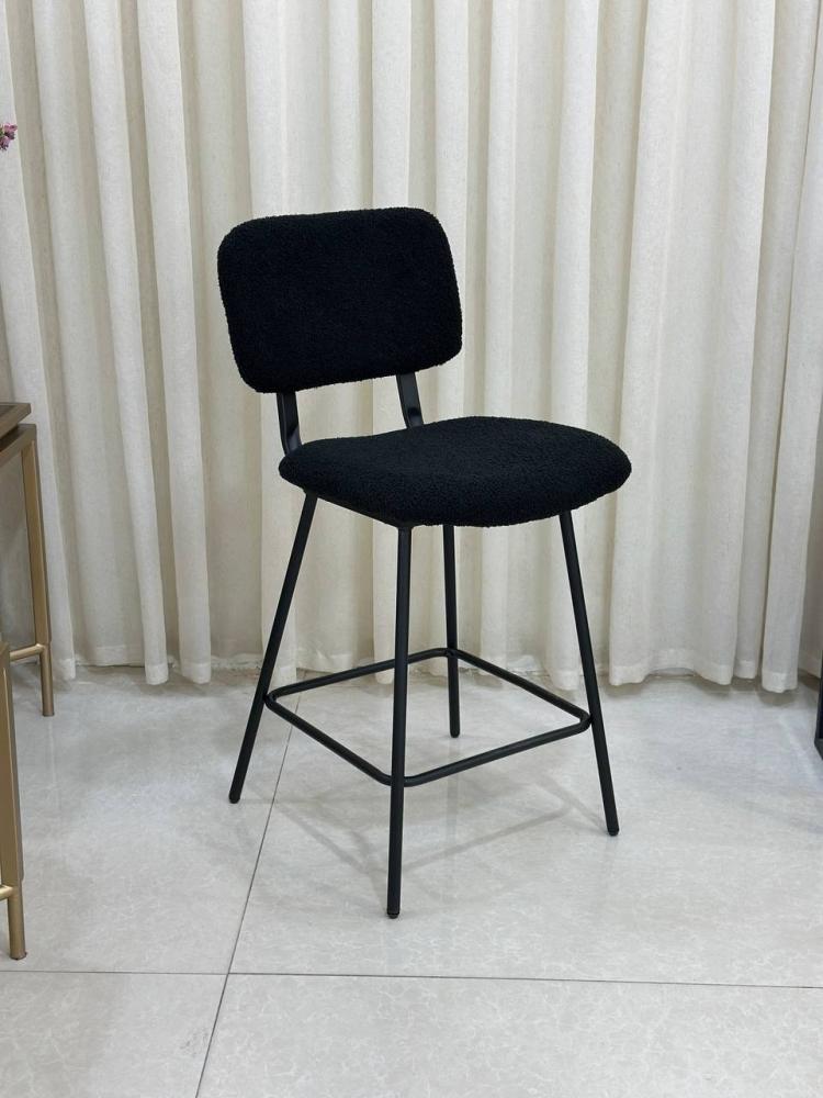 كرسي بار مرتفع بقماش اسود يجمع بين الأناقة العصرية والراحة العملية