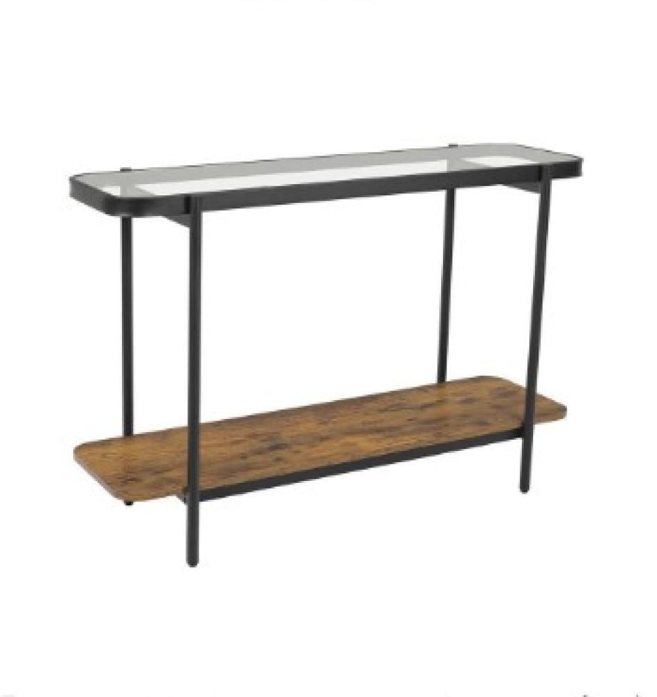 كونسول استقبال أنيق يجمع بين الزجاج الشفاف والخشب الطبيعي بتصميم عصري يضفي لمسة راقية على المداخل أو المساحات الجانبية. مثالي لعرض القطع الجمالية أو للاستخدام العملي في المدخل.