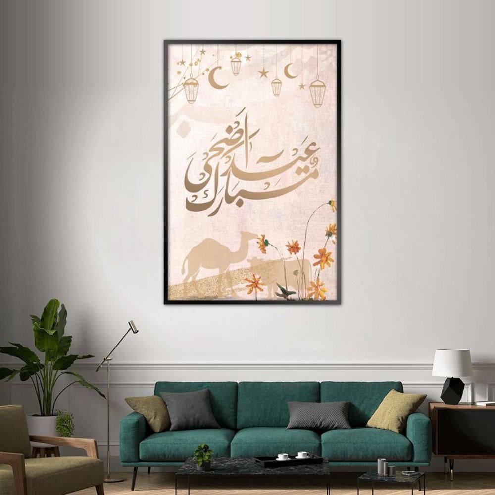 لوحة جدارية ترحيبية بعبارات عيدية – مشدودة على إطار خشبي مخفي