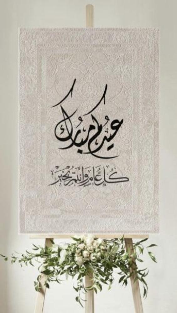 لوحة جدارية ترحيبية بعبارات عيدية – مشدودة على إطار خشبي مخفي