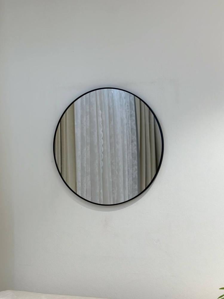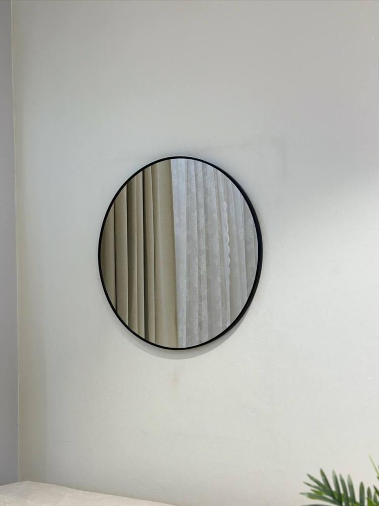 هذه المرايا تتميز بتصميم عصري وأنيق، حيث تأتي بشكل دائري مع إطار أسود اللون يضفي عليها مظهرًا فاخرًا ومتناسقًا مع معظم الأثاث والديكورات الحديثة. يبلغ قطر المرآة 80 سم مما يجعلها خيارًا مثاليًا للغرف الكبيرة أو كعنصر بارز في المساحات المفتوحة.