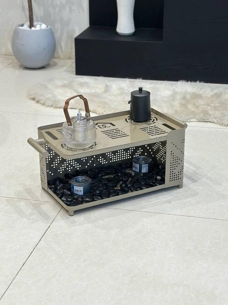 ارتقِ بتجربة الشواء والضيافة الخاصة بك مع منقل الحديد الصاج بلونه الشمباني الفاخر، المصمم ليجمع بين المتانة العالية والمظهر العصري الجذاب.